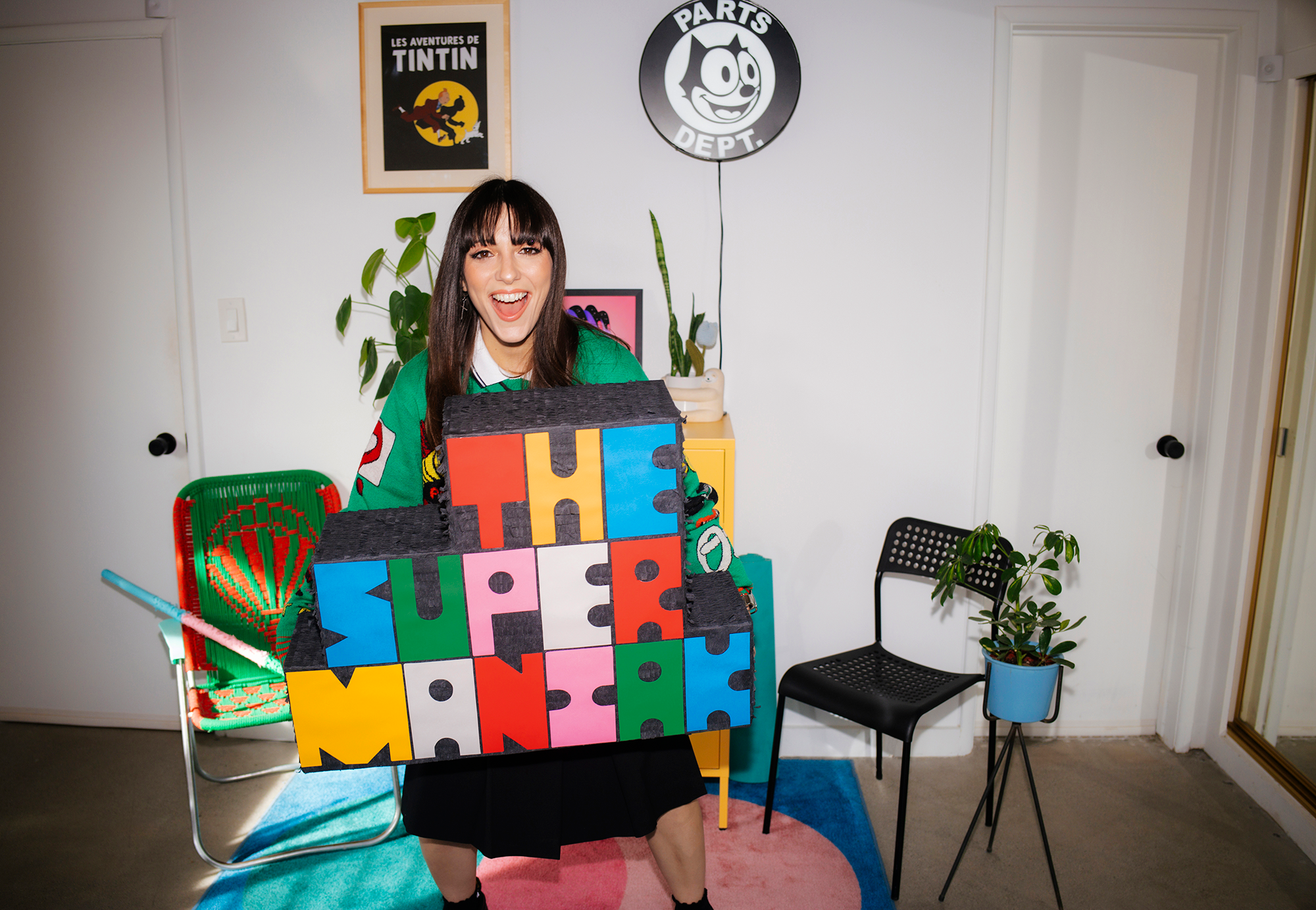 LELE PONS' BACHELORETTE PARTY CUSTOM LOGO PIÑATA The Super Maniak PHOTOGRAPHY Maria Jose Govea piñataspropscostumesdesignart a creative studio based in Los Angeles Instagram about contact TikTok